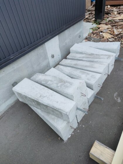 ちょうど夫が単身赴任から帰ってくるタイミングだったので、基礎ブロックの設置を依頼。